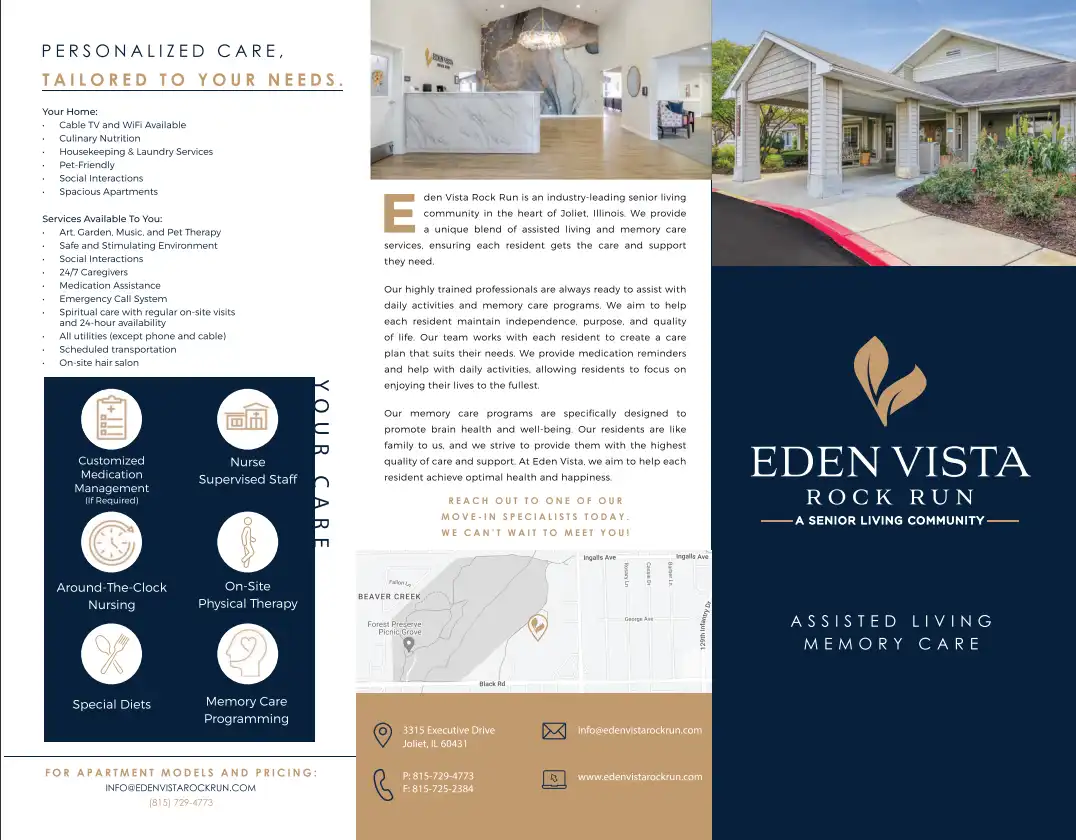 Eden Vista Rock Run is a proud member of the Vista Senior Care network. Eden Vista Rock Run is a dedicated branch tailored specifically for the senior communities. Specializing in Assisted Living, and Memory Care. Eden Vista Rock Run ensures unparalleled personalized care and 24-hour assistance for their residents assuring residents a consistent and exceptional experience.